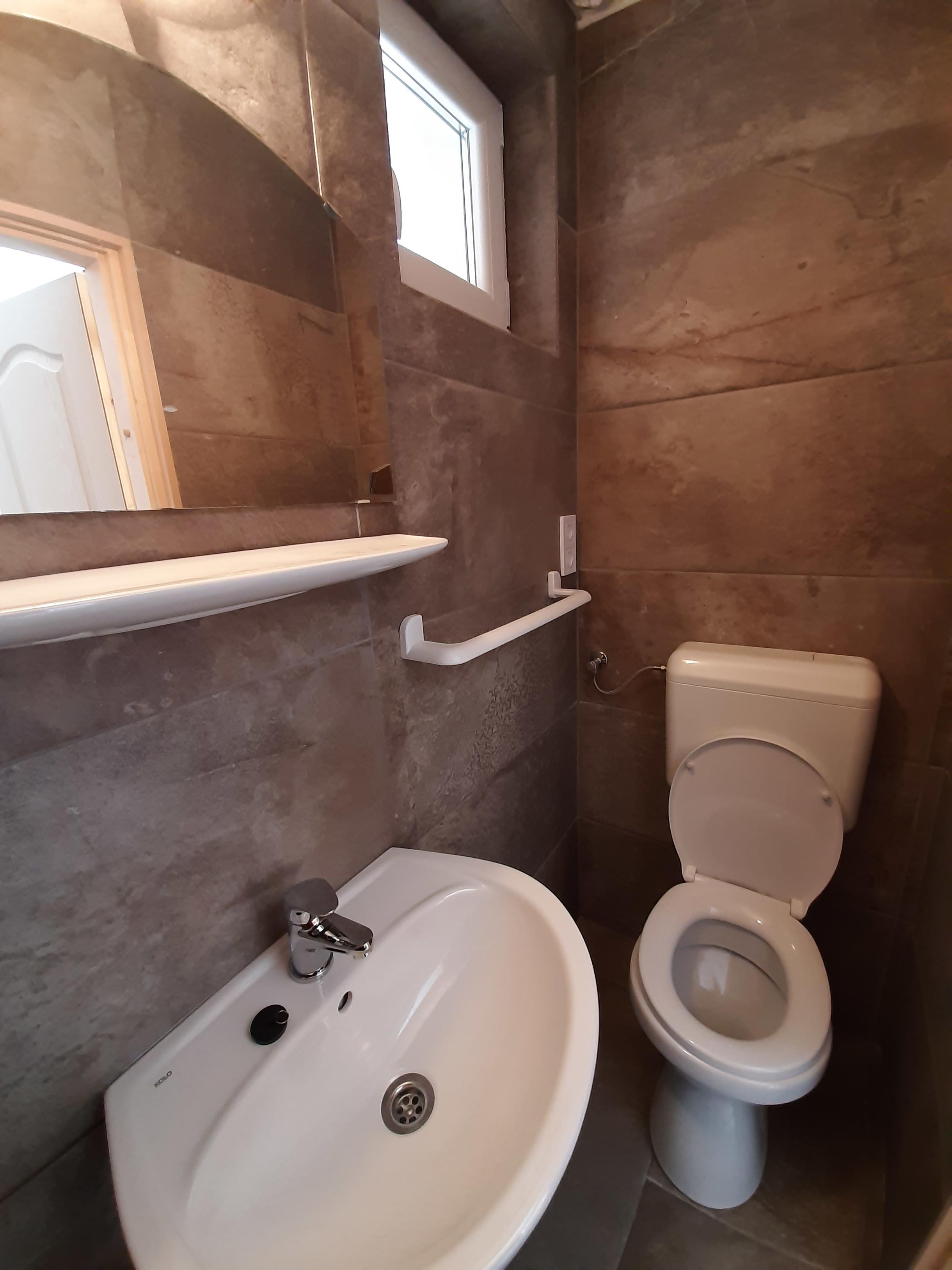 Es ist im Erdgeschoss ,Einraum,für 2 Personen,mit Küche, Badezimmer ( Duschkabin,Wc ),Terrasse.