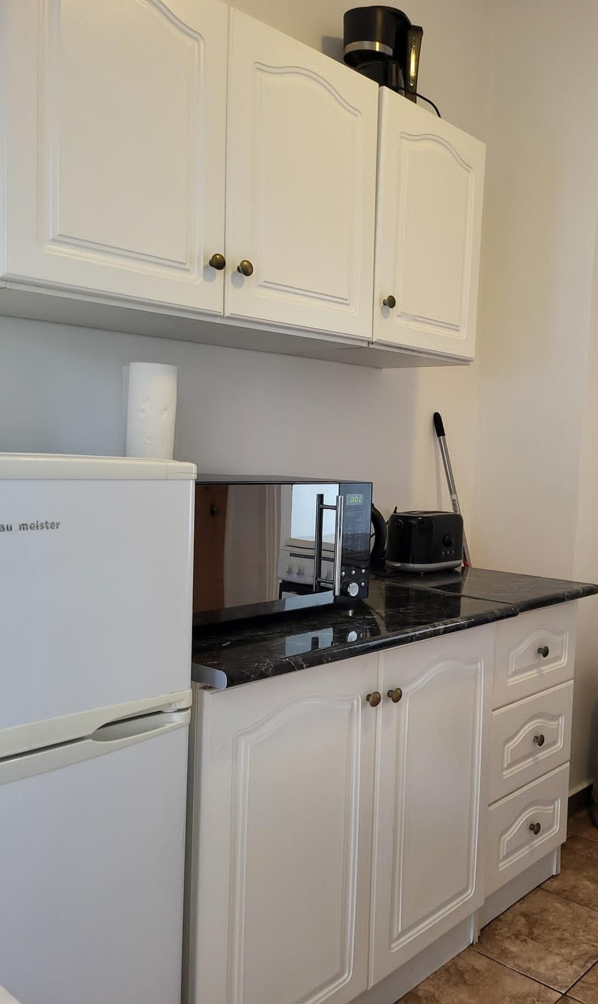 Auf der Terrasse können Sie relaxen, Kaffee trinken oder einfach ein gutes Buch lesen. Ihnen stehen neben einem Kühlschrank auch eine Kaffeemaschine, Wasserkocher und eine Mikrowelle zur Verfügung.