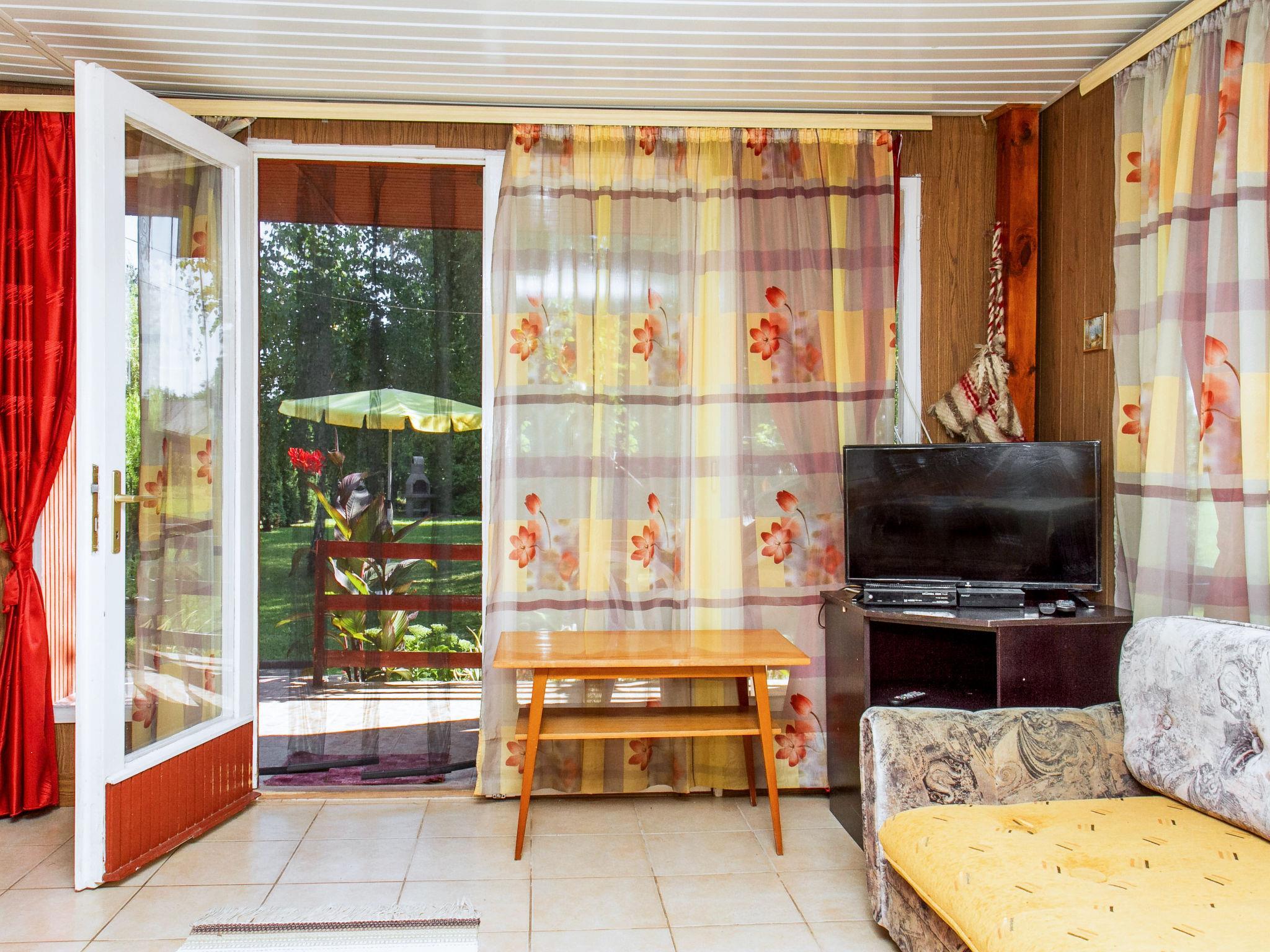 Balatomáriafürdo: Simple timber house "Rosso". In a sunny position, 400 m from the lake. Private: garden 500 m2 (fenced), lawn for sunbathing. Grocery 450 m, restaurant 300 m, grass beach 400 m. Please note: railway line closeby.