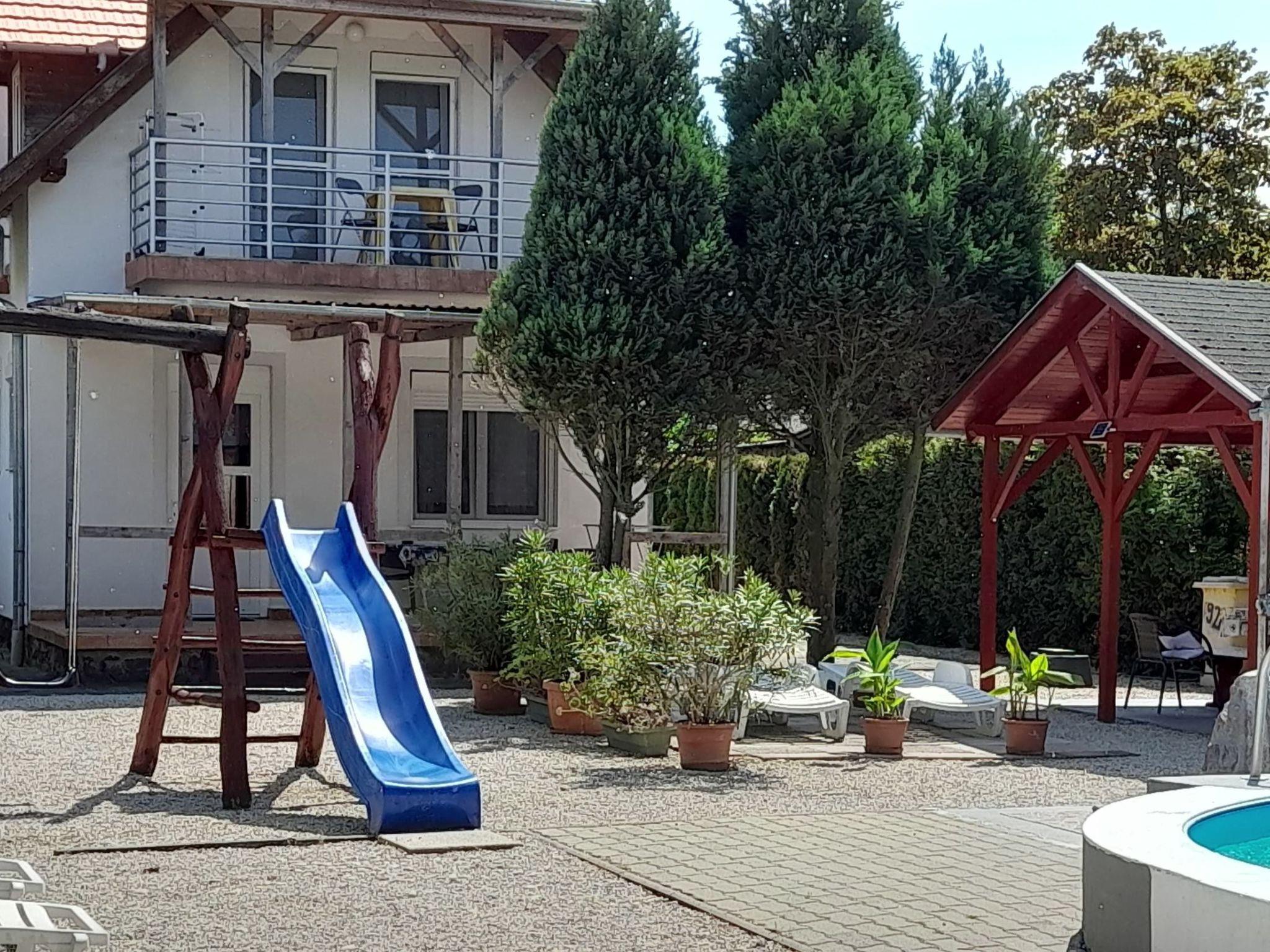 Swimming pool (5.2m x 10.6m x 1.40m. Water height 1.2m). Internet access, playground, trampoline.