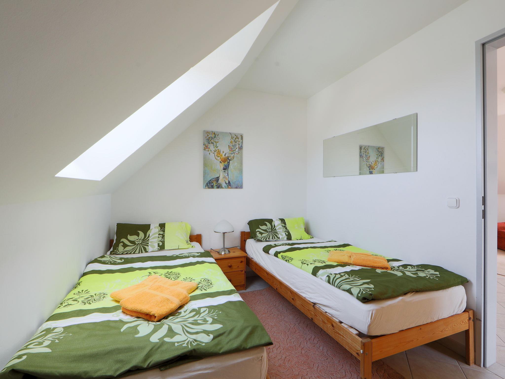 Balatonmáriafürdö 15 km from Keszthely: Beautiful apartment block, built in 2006. In a central, sunny position, 500 m from the lake, 650 m from the beach. For shared use: property (fenced), garden, lawn for sunbathing, swimming pool (6 x 3 m, depth 120 cm, seasonal availability: 15.May. - 30.Sep.). Barbecue, children's playground. In the house: WiFi, air conditioning, burglar alarm system. Parking at the house. Shop 150 m, restaurant 100 m. Please note: railway line closeby.