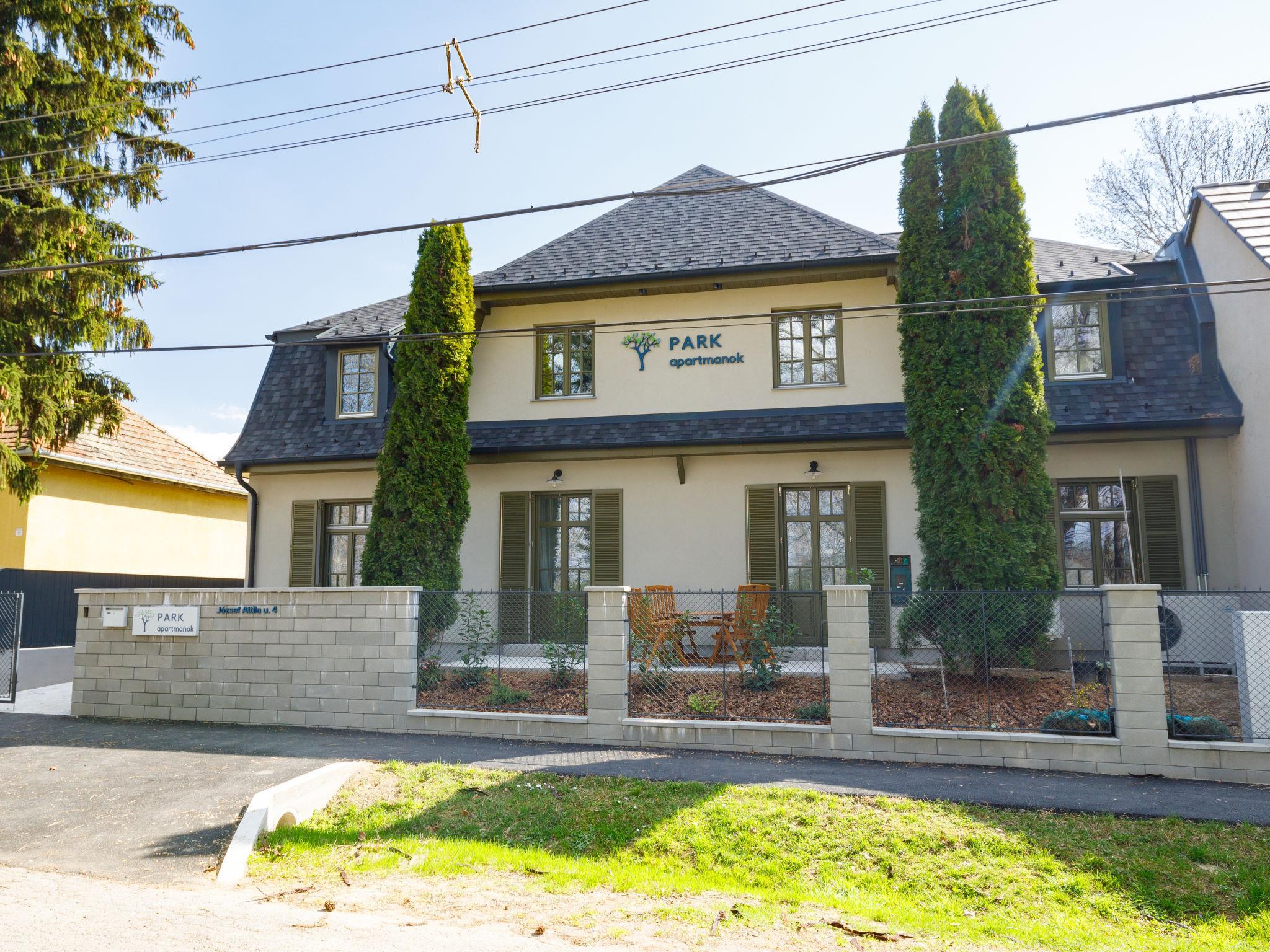 Balatonszárszó 5 km from Balatonföldvár: Modern, beautiful apartment house, built in 2023. 5 apartments in the residence. Excellent location: right in the centre but still quiet, 290 m from the lake, 350 m from the beach. For shared use: property (fenced). Outdoor shower, table tennis, pergola, garden furniture, barbecue, children's playground (slide, sandbox). In the house: WiFi, table tennis, billiard table, table football, sun terrace, central heating system, air conditioning, washing machine, tumble dryer. Breakfast on request (extra). Parking at the house. Grocery 90 m, supermarket 7 km, restaurant, café 140 m, bicycle rental 150 m, bus stop 850 m, railway station, 200 m, thermal baths "Csiszta" 36 km. Surf school 4 km, sailing school 1 km, tennis 500 m, riding stable 9 km, children's playground 600 m. Nearby attractions: Siófok Bella Zoo 24 km, Tihany 12 km, Siófok Theme Pak 24 km, Festetics Castle 57 km, Hévíz 61 m. The common area has a kitchen with a dishwasher, 4 ceramic hobs and an oven.