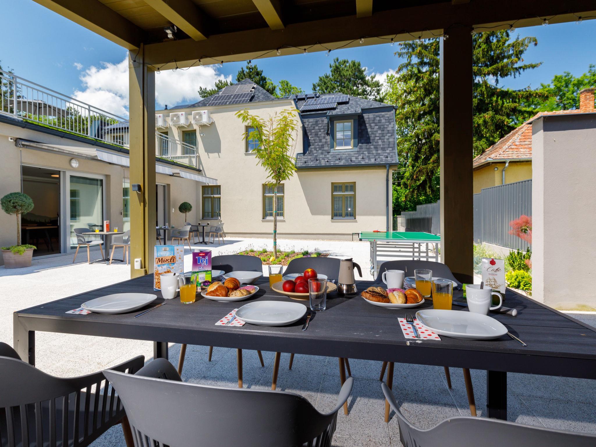 Balatonszárszó 5 km from Balatonföldvár: Modern, beautiful apartment house, built in 2023. 5 apartments in the residence. Excellent location: right in the centre but still quiet, 290 m from the lake, 350 m from the beach. For shared use: property (fenced). Outdoor shower, table tennis, pergola, garden furniture, barbecue, children's playground (slide, sandbox). In the house: WiFi, table tennis, billiard table, table football, sun terrace, central heating system, air conditioning, washing machine, tumble dryer. Breakfast on request (extra). Parking at the house. Grocery 90 m, supermarket 7 km, restaurant, café 140 m, bicycle rental 150 m, bus stop 850 m, railway station, 200 m, thermal baths "Csiszta" 36 km. Surf school 4 km, sailing school 1 km, tennis 500 m, riding stable 9 km, children's playground 600 m. Nearby attractions: Siófok Bella Zoo 24 km, Tihany 12 km, Siófok Theme Pak 24 km, Festetics Castle 57 km, Hévíz 61 m. The common area has a kitchen with a dishwasher, 4 ceramic hobs and an oven.