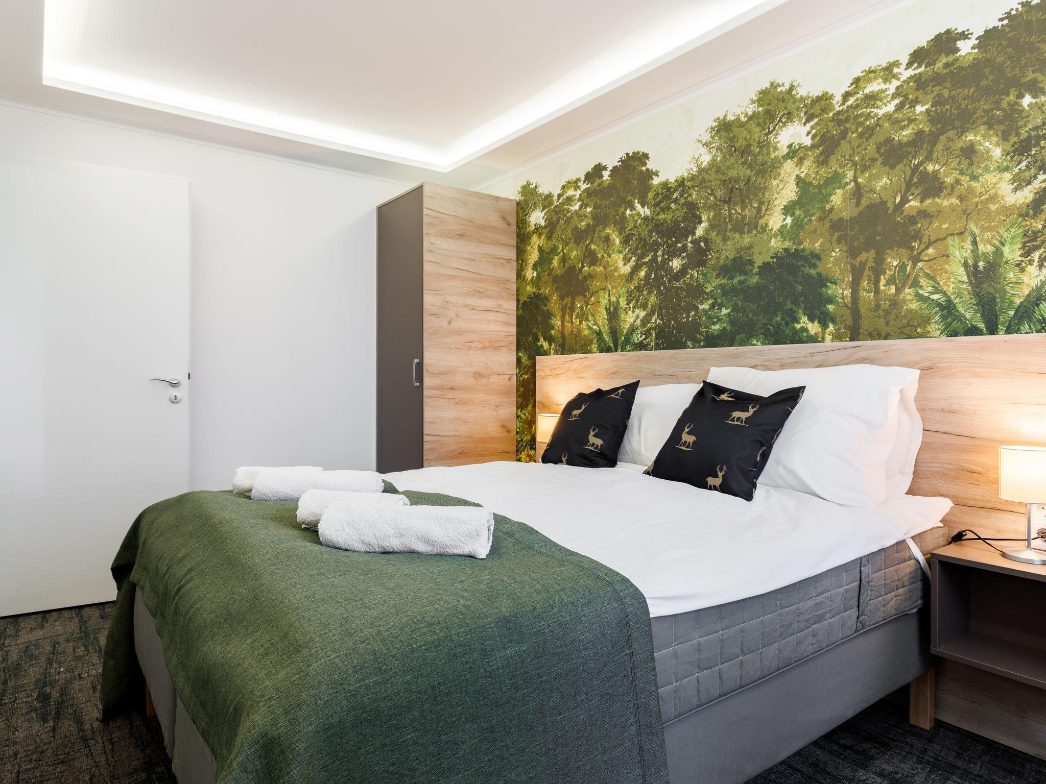 "Park 6", 3-room apartment on the upper floor. Beautiful and modern furnishings: open living/dining room with 2 sofabeds and cable TV (flat screen). 2 double bedrooms, each room with 1 french bed (160 cm, length 200 cm). Small, open kitchen (2 ceramic glass hob hotplates, microwave, electric coffee machine). Shower/WC. Floor heating. Solar power. North-west facing position. Facilities: children's high chair, baby cot (extra), hair dryer. Internet (WiFi). Type of coffee machine: Nespresso.