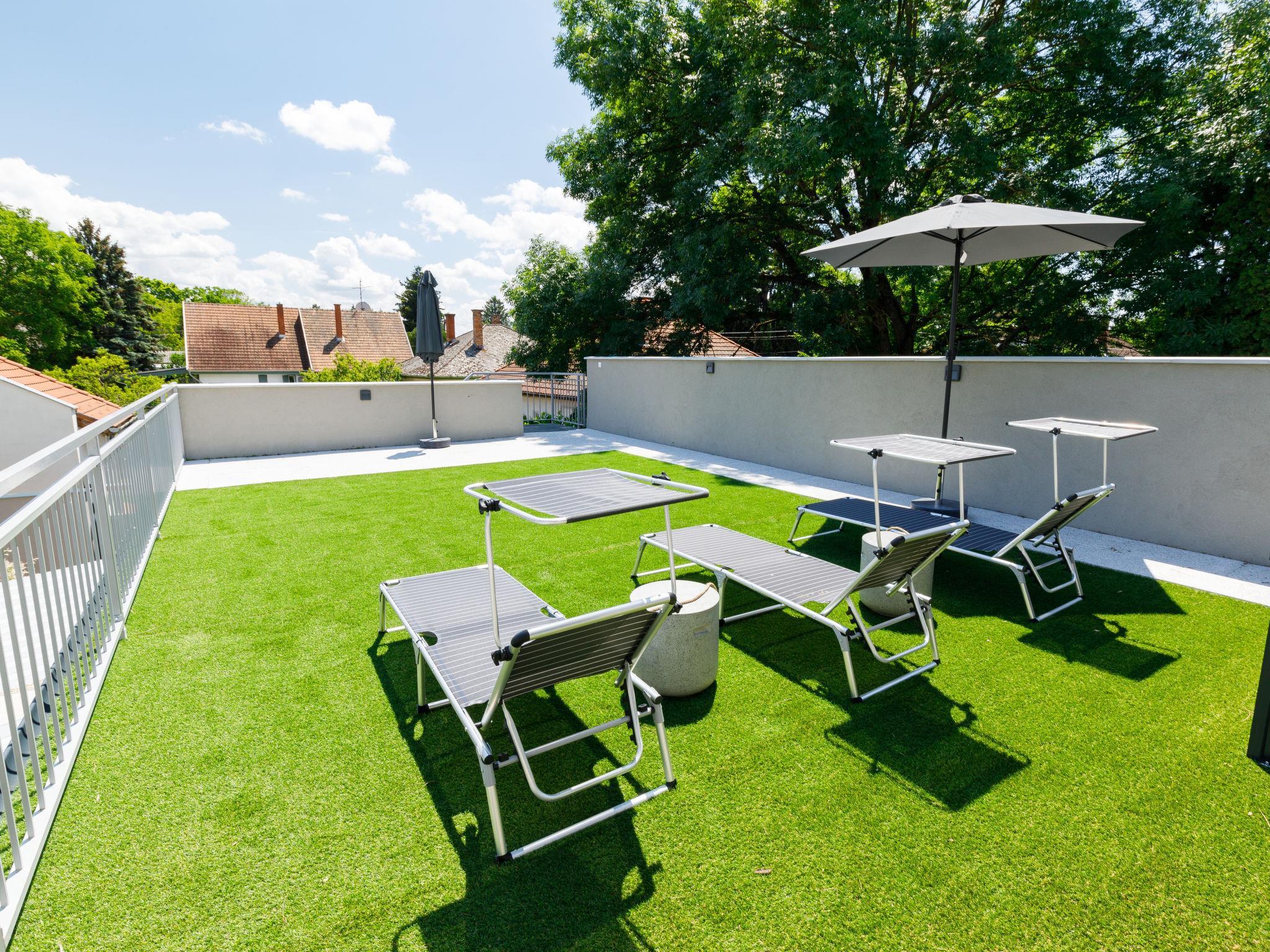 Balatonszárszó 5 km from Balatonföldvár: Large, modern, beautiful apartment house, built in 2023. 5 apartments in the residence. Excellent location: right in the centre but still quiet, 290 m from the lake, 350 m from the beach. Private: property (fenced). Outdoor shower, hot tub, table tennis, pergola, garden furniture, barbecue, children's playground (slide, sandbox). In the house: WiFi, table tennis, billiard table, table football, sun terrace, central heating system, air conditioning, washing machine, tumble dryer. Breakfast on request (extra). Parking at the house. Grocery 90 m, supermarket 7 km, restaurant, café 140 m, bicycle rental 150 m, bus stop 850 m, railway station 200 m, 200 m, thermal baths "Csiszta" 36 km. Surf school 4 km, sailing school 1 km, tennis 500 m, riding stable 9 km, children's playground 600 m. Nearby attractions: Siófok Bella Zoo 24 km, Tihany 12 km, Siófok Theme Pak 24 km, Festetics Castle 57 km, Hévíz 61 m.