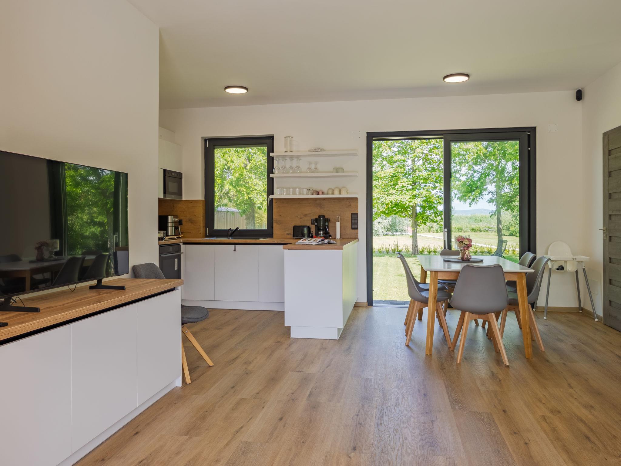 Balatonszárszó 5 km from Balatonföldvár: Modern, comfortable house "Daniel", built in 2024. In a sunny position residential area (villas), 80 m from the lake, 500 m from the beach. For shared use: (sandbox). Private: property (fenced), large, well-kept garden with lawn and trees. Badminton, barbecue (sandbox). In the house: WiFi, central heating system, air conditioning, burglar alarm system. Parking (for 2 cars) on the premises. Grocery 1 km, restaurant, café 750 m, bicycle rental 1 km, railway station 950 m, grass beach 400 m, thermal baths "Igal" 47 km. Tennis 650 m, riding stable 14 km, cycle lane 10 m, children's playground 1 km. Nearby attractions: Kis-Balaton Visitor Center 60 km, Turtle Park 7 km, Balatonlelle Giant Wheel 12 km, Zamárdi Adventure Park 26 km, Hévíz Thermal Bath 68 km, Bella Zoo Siófok 39 km.