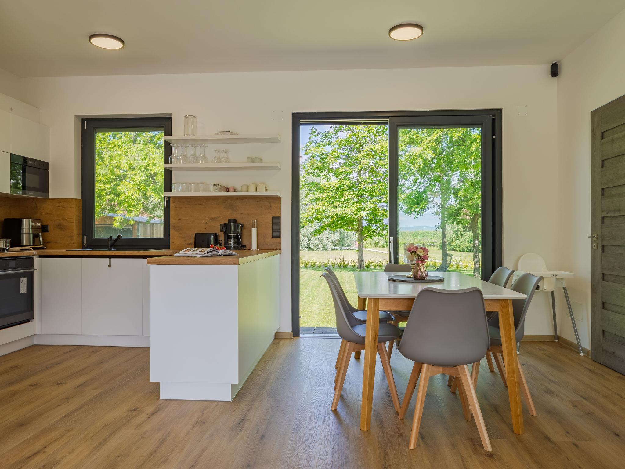 4-room house. Spacious and bright, modern and tasteful furnishings: open living/dining room with dining table, digital TV, flat screen and air conditioning. Exit to the garden, to the terrace. 3 double bedrooms, each room with 1 french bed (160 cm, length 200 cm), air conditioning. Open kitchen (dishwasher, 4 induction hot plates, toaster, kettle, freezer, electric coffee machine, combination microwave). Shower/WC, sep. WC. Air-conditioning, floor heating. Solar power. Terrace, south facing position. Terrace furniture, barbecue (portable), deck chairs (2). Facilities: Internet (WiFi). Smart TV.