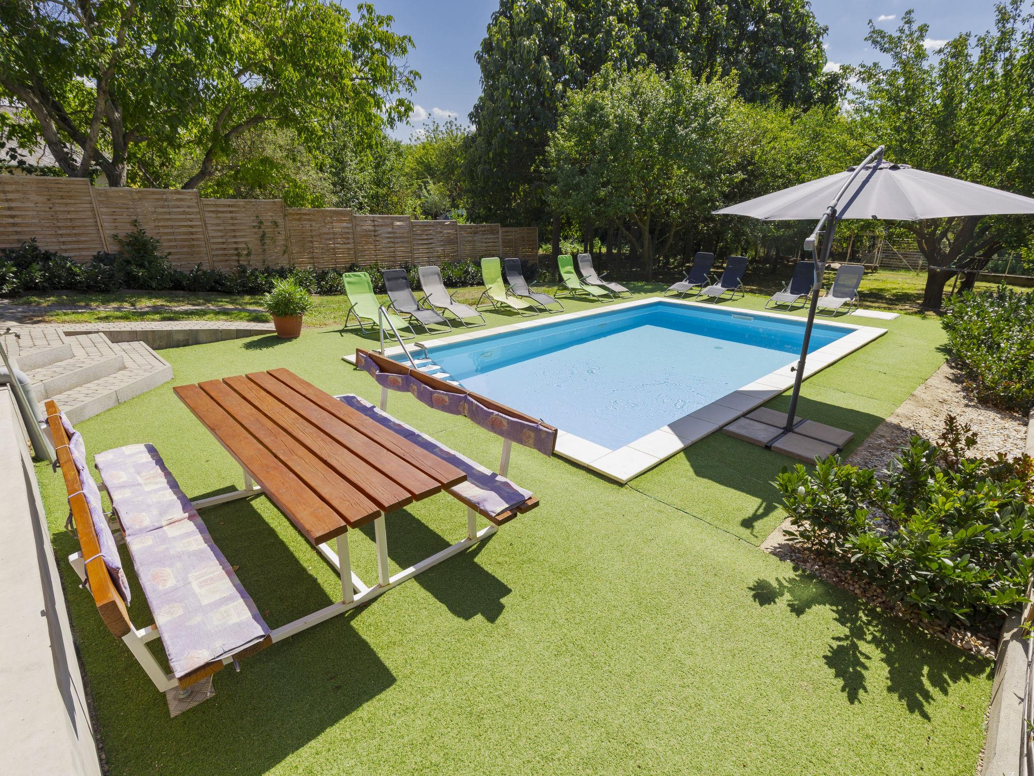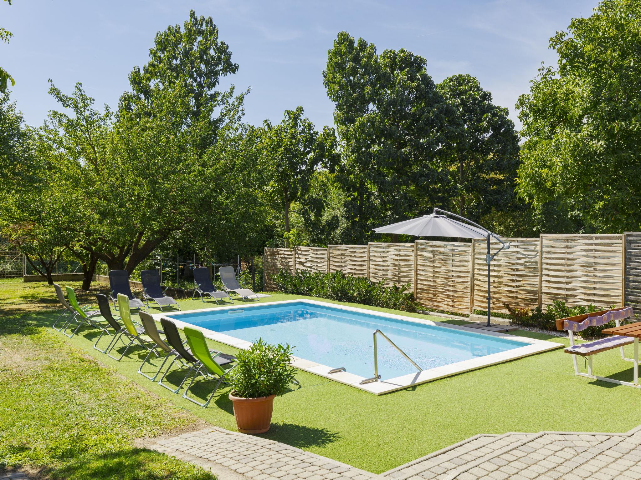 Balatonszemes: Cosy apartment house "Zsuzsi", 2 storeys, renovated in 2011. In the resort, 1 km from the lake. Private: garden 800 m2 (fenced), swimming pool (7 x 4 m, depth 135 cm, seasonal availability: 15.May. - 15.Sep.). In the house: WiFi, washing machine. Grocery 400 m, restaurant, grass beach 1 km. Riding stable 400 m.