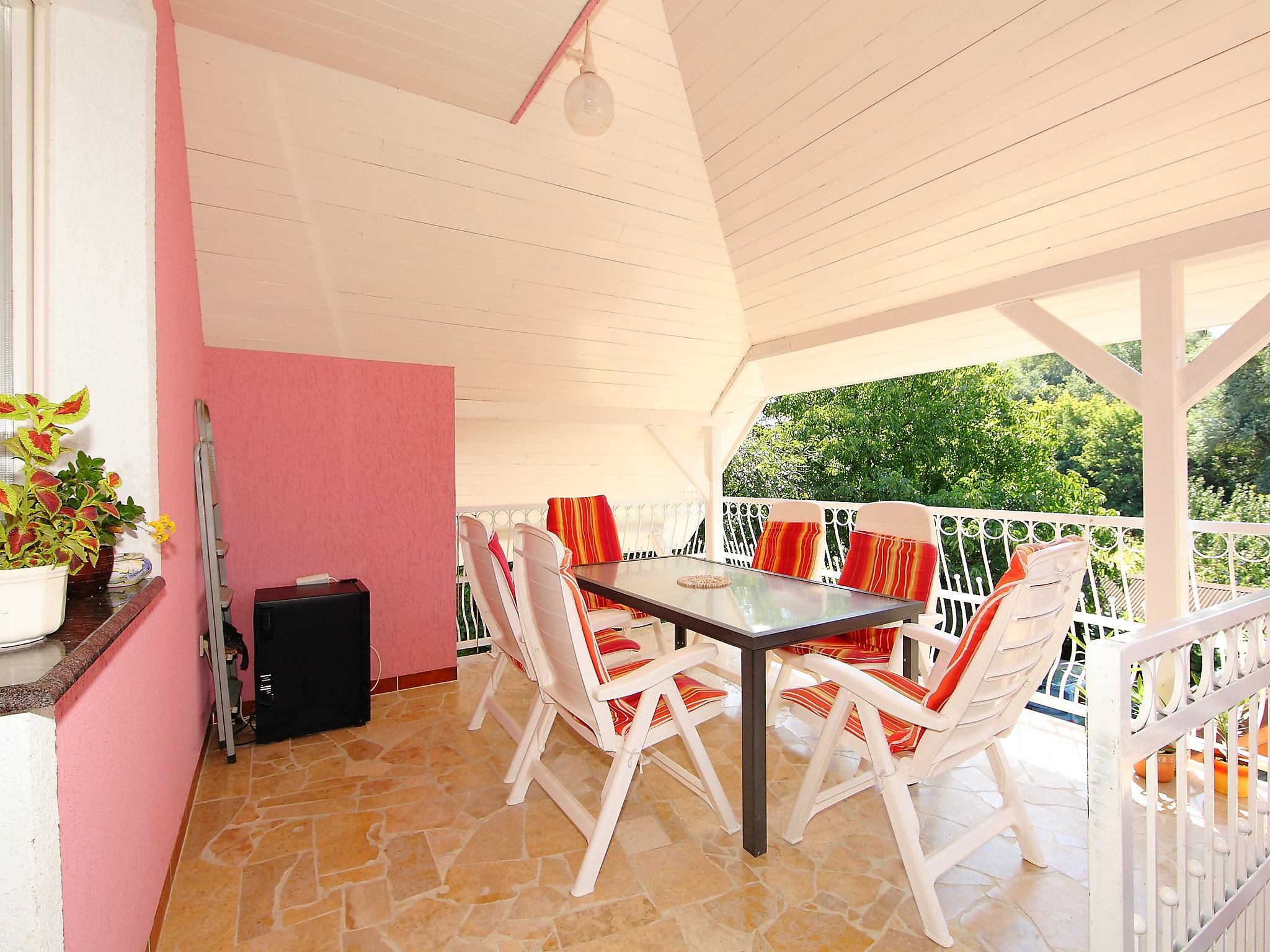 7-room house on 2 levels. Spacious in 2022, comfortable and modern furnishings: 4 rooms, each room with 2 beds. Open kitchen). 2 showers/WC. Heating (extra). Upper floor: (exterior staircase) large living room with satellite TV, flat screen and DVD. 1 room with 1 double bed (200 cm, length 200 cm). Exit to the balcony. 1 room with 1 french bed (180 cm, length 200 cm). Exit to the terrace. 1 room with 1 french bed (180 cm, length 200 cm). Open kitchen (4 hot plates, oven, dishwasher, microwave). Bath/WC, sep. WC. Terrace 20 m2, terrace 15 m2. Terrace furniture, balcony furniture. Facilities: children's high chair, baby cot (extra). Parking (fenced 3 cars).