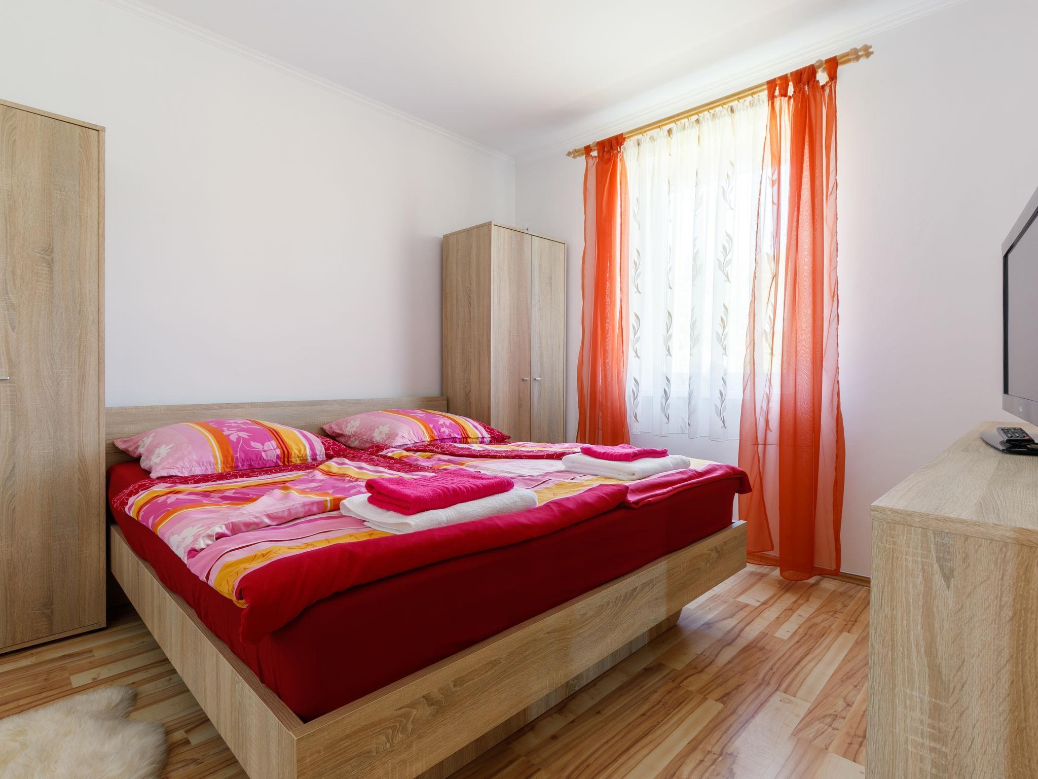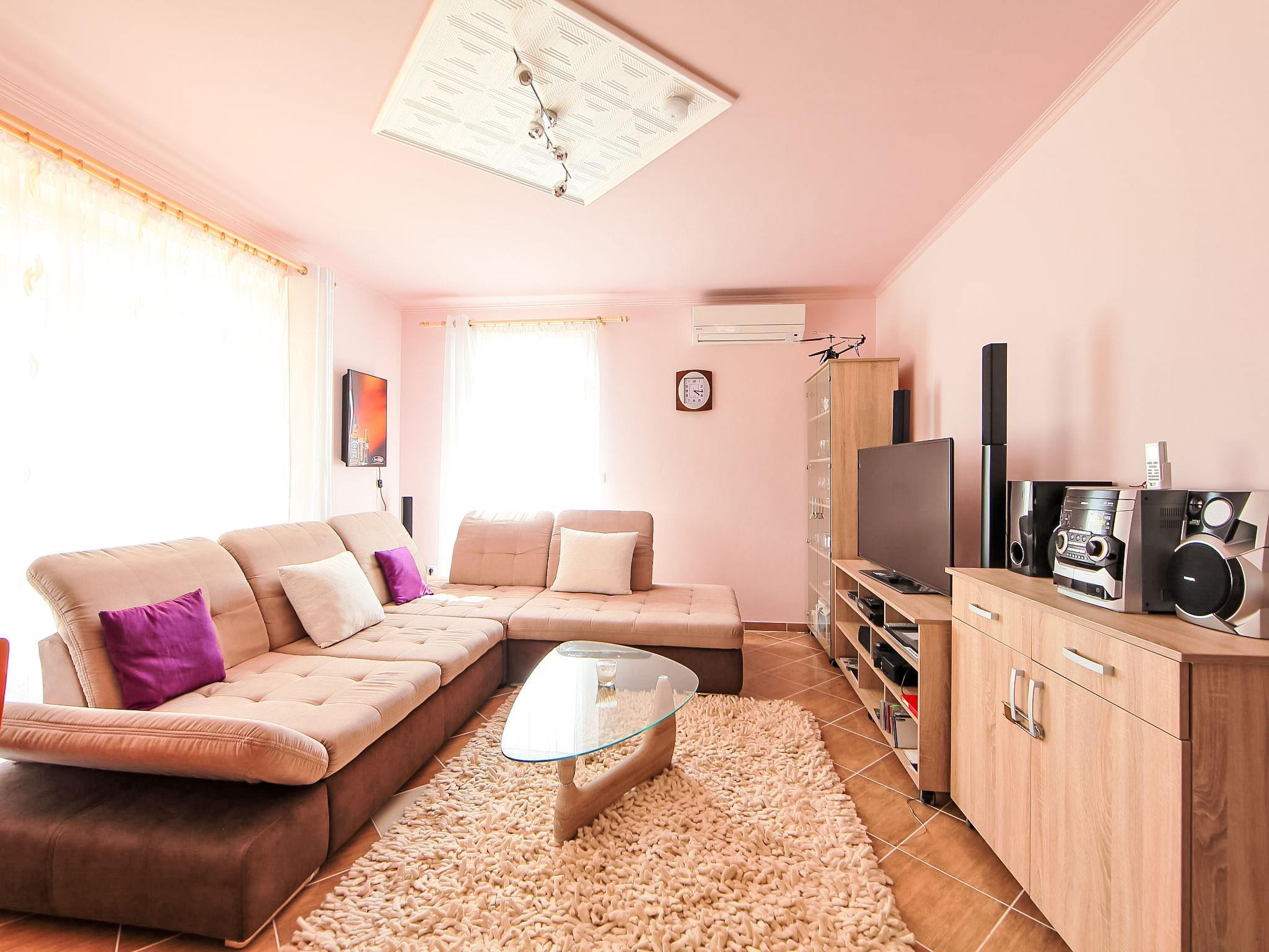 3-room house 80 m2. Comfortable and cosy furnishings: living room with 1 pull-out bed (2 pers.), dining table and satellite TV. Exit to the terrace. 2 rooms, each room with 1 french bed. Open kitchen (4 hot plates, oven, dishwasher, microwave). Shower/bidet/WC, sep. WC. Heating, floor heating. Terrace 15 m2. Terrace furniture. Facilities: children's high chair, baby cot (extra). Parking (2 cars).