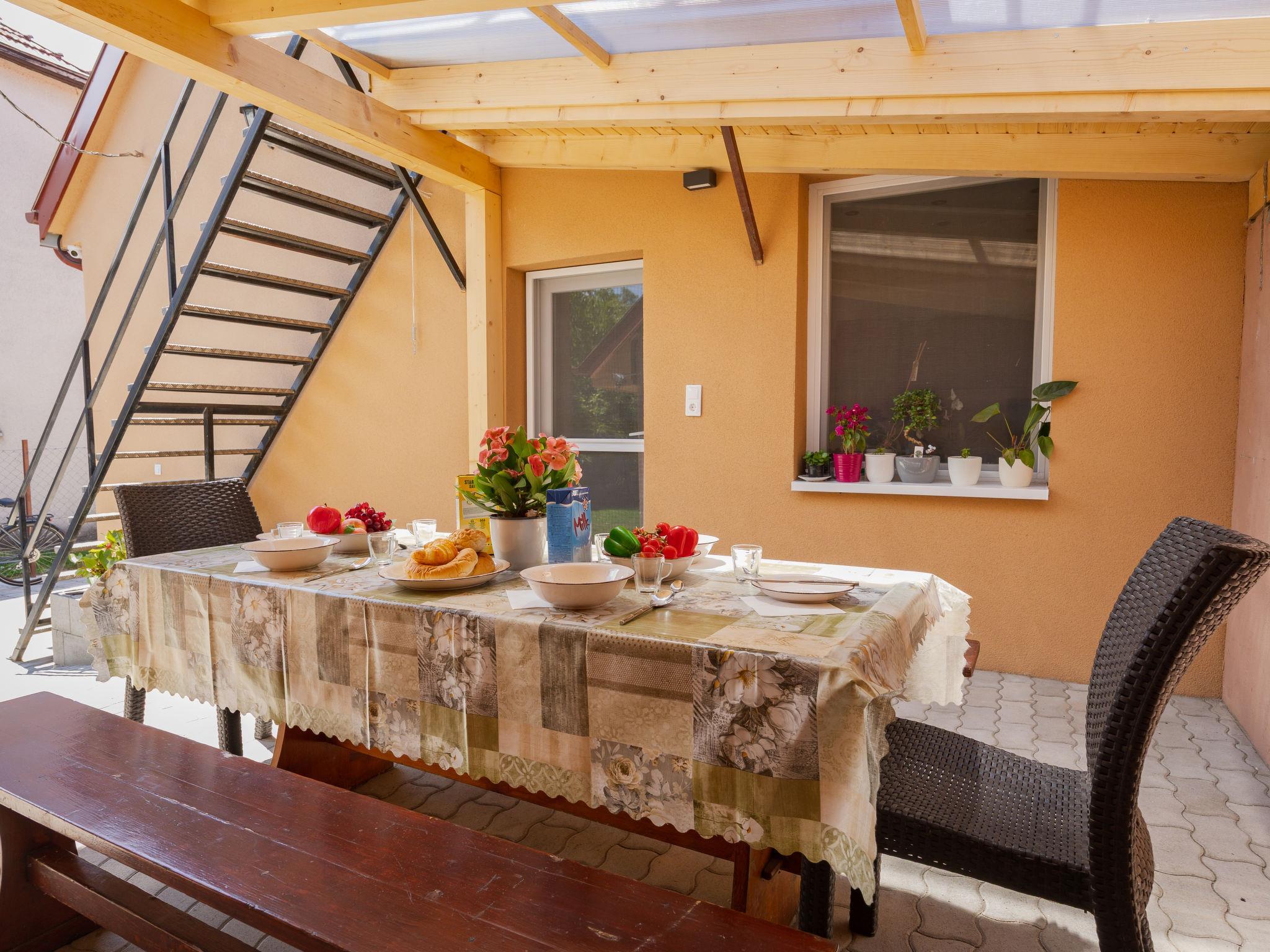 Balatonszemes 7 km from Balatonlelle: Please note: security camera on the exterior of the property. Cosy 2-family house, 2 storeys, renovated in 2022. In the resort, 400 m from the lake, 500 m from the beach. For shared use: property 400 m2 (fenced), garden 100 m2 with plants. Private: terrace, barbecue. In the house: WiFi, air conditioning. Parking at the house. Grocery 500 m, supermarket 6 km, restaurant 700 m, bakery 1 km, café 800 m, 500 m, outdoor swimming pool 600 m. Riding stable 3 km, cycle lane 500 m, children's playground 300 m. Please note: baby equipment on request (extra). The owner lives in the same residence.