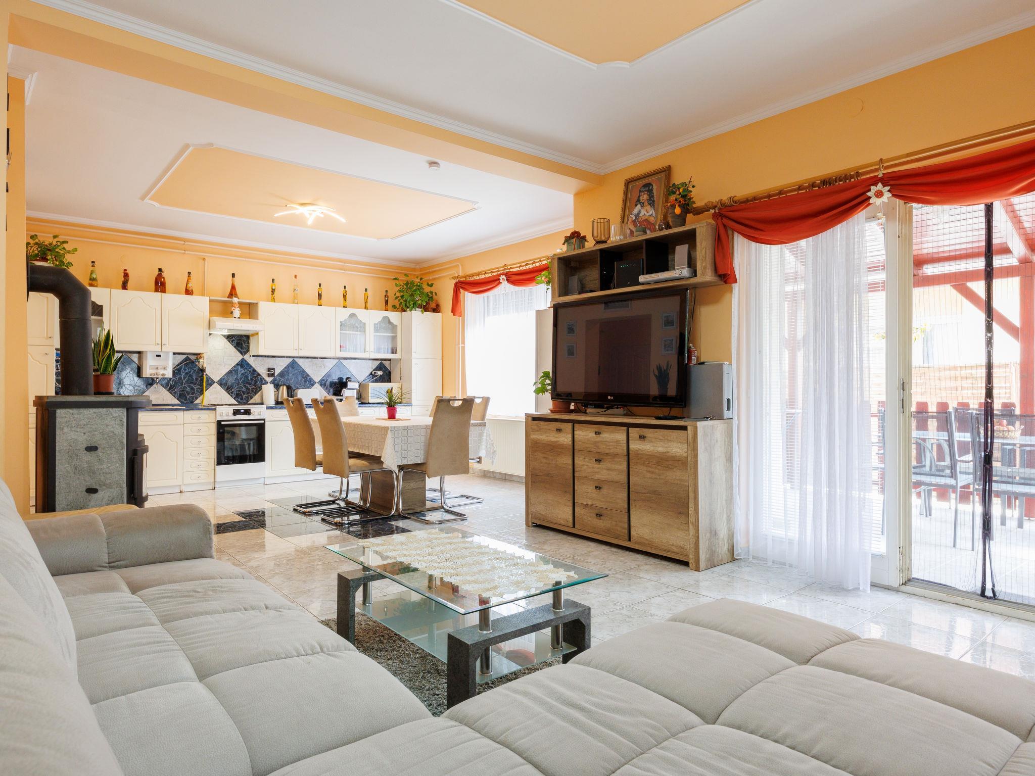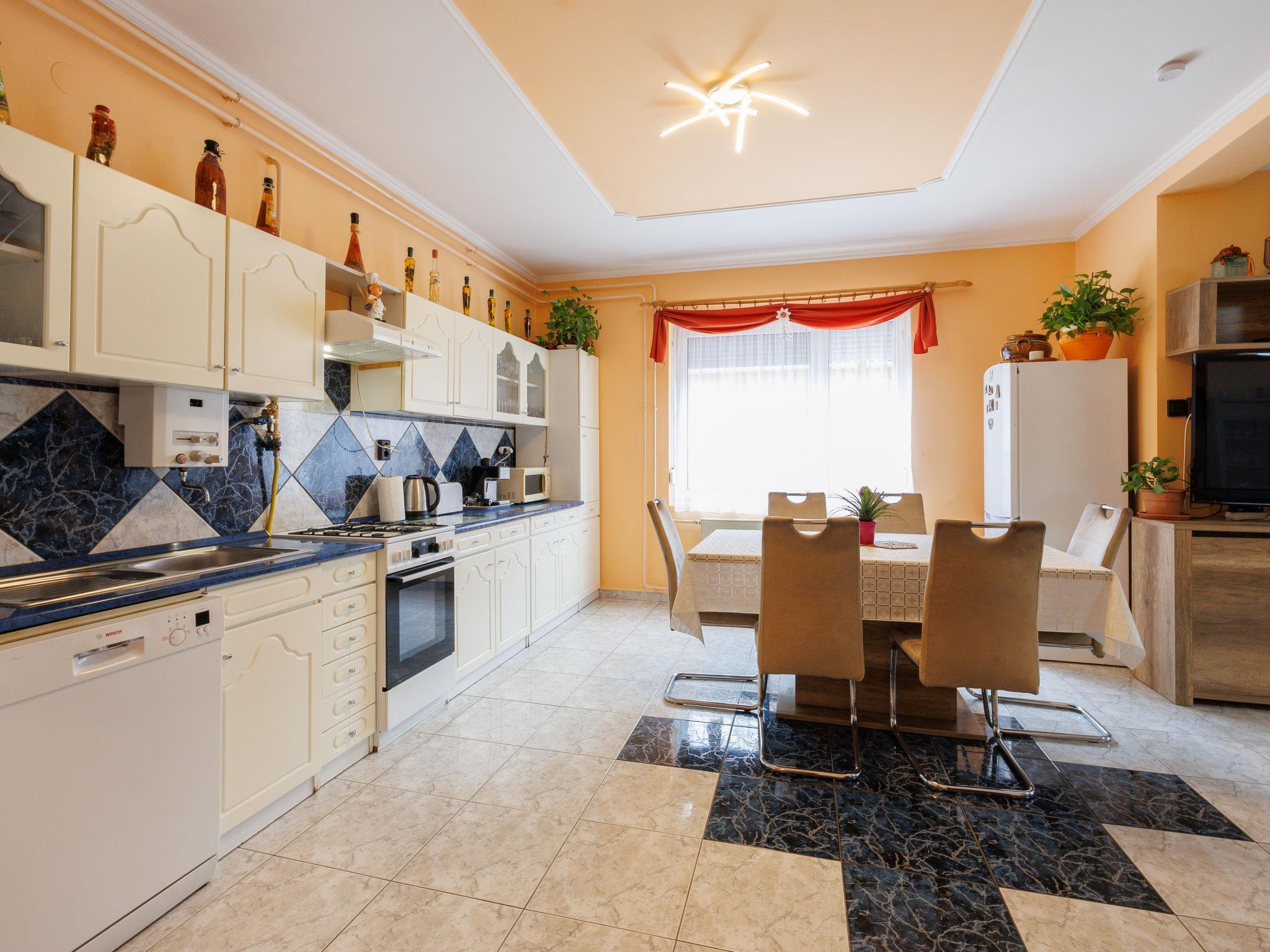 "Gyula", 4-room apartment on the ground floor. Spacious, partly renovated in 2024, comfortable furnishings: open living/dining room with dining table, cable TV, international TV channels and flat screen. Exit to the veranda. 1 large double bedroom with 1 french bed. 2 double bedrooms, each room with 1 french bed. Open kitchen (oven, dishwasher, Gas stove, 4 gas rings, toaster, kettle, microwave, electric coffee machine). Bath/shower, sep. WC. No heating option. Terrace furniture. Facilities: Internet (WiFi). Parking (2 cars). MA23062507