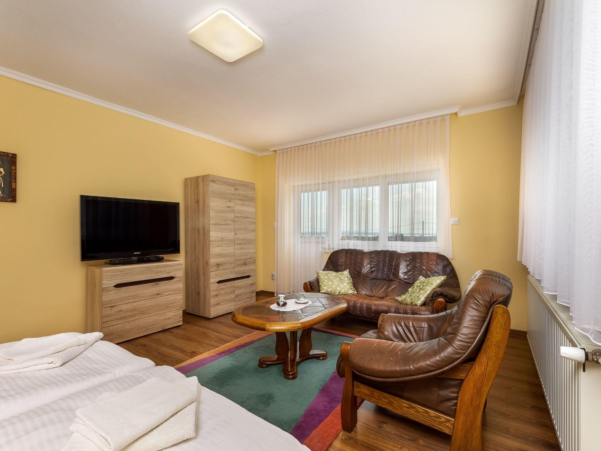 The holiday flat is located on a 1200 square metre enclosed garden plot with meadow, flowers, shrubs and trees, bordered by a fence. The landlord lives permanently in the house, but uses a separate entrance and access is via a side road (tarmac). Parking (for 2 cars) on the property.DistancesShopping 800 m, restaurant 800 m, centre 800 m. Thermal bath, cinema each 5 km in Hévíz. Railway station, indoor swimming pool, sauna, discotheque, doctor, pharmacy, bank each 5 km in Keszthely. Airport in Sármellék 15 km. Railway line 5 km. Main road 450 m. Children's playground 800 m. Lake Balaton 5 km in Keszthely (beach 5 km in Keszthely with meadow and sand). Keszthely: tennis, horse riding, fishing, water sports facilities, boat mooring 5 km each. Dog beach 7 km.