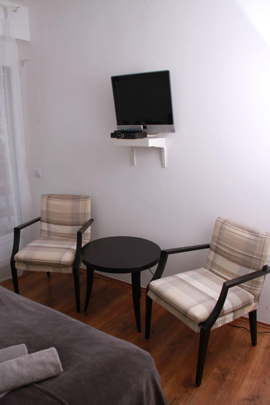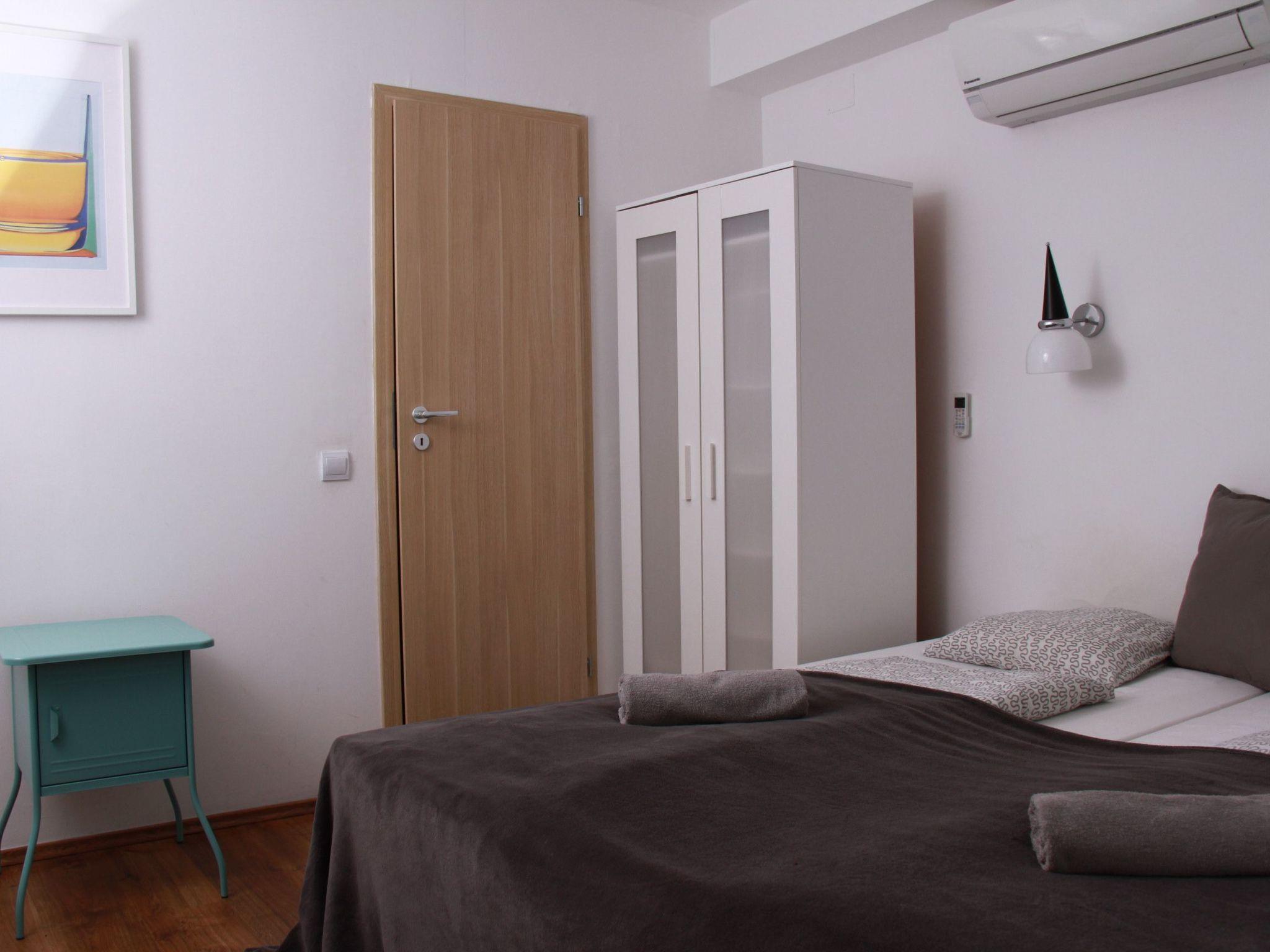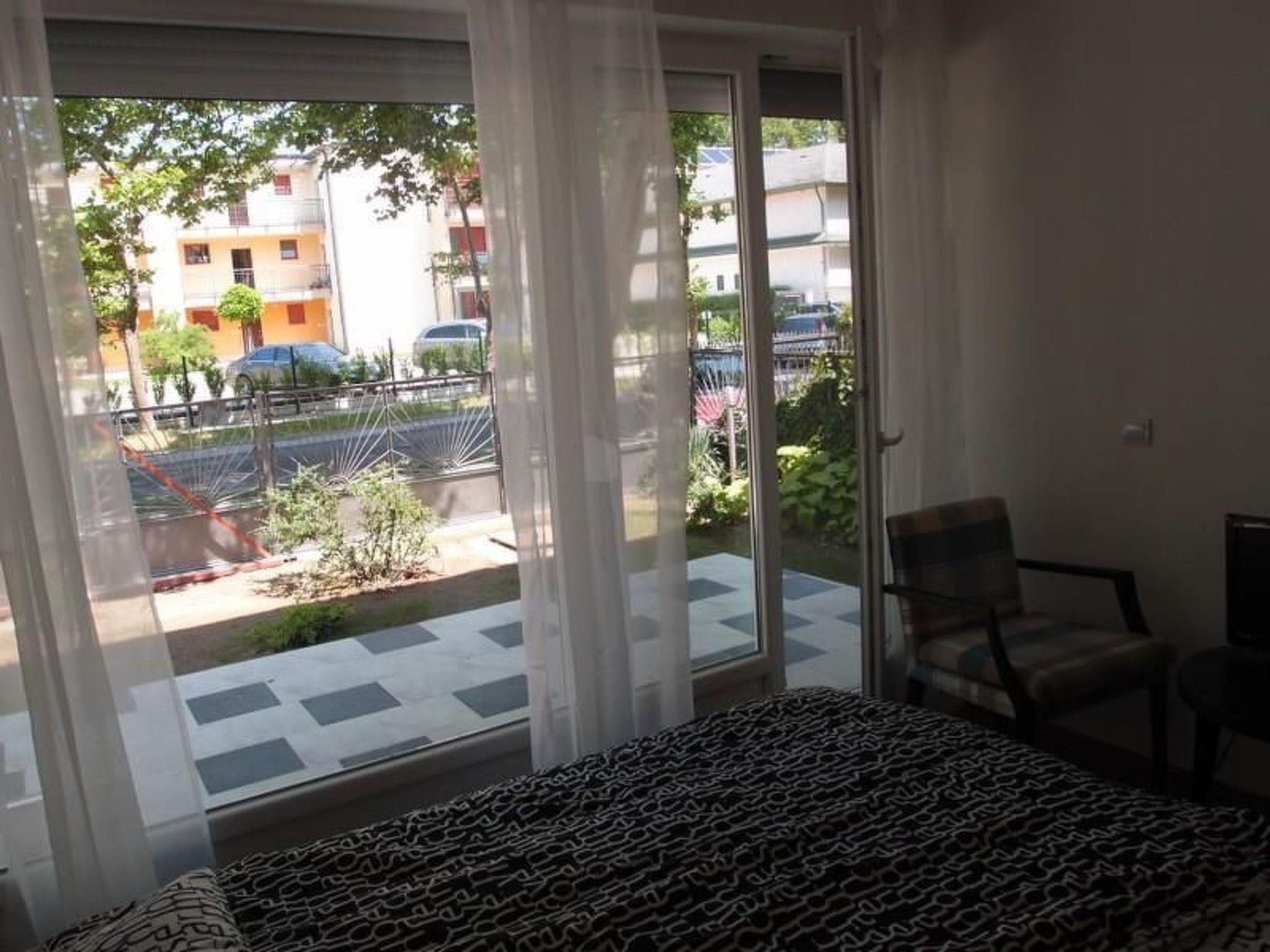 Holiday flat for eight people on the ground floor Your flat on the ground floor has one bedroom with a double bed and two bedrooms with four single beds. There is also a lounge with a sofa bed (sleeps two), dining table and kitchen. All rooms are air-conditioned, including the lounge. The Balaton is 50 metres away as the crow flies or a 1-2 minute walk. There are parking spaces per flat via also a barbecue area for common use, to the centre it is only a few minutes walk, via also to the promenade! Netflix and Amazon Prime included on new HD TV.
