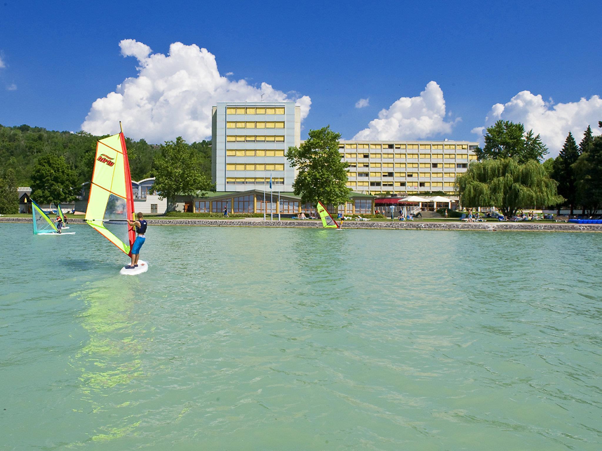 Tihany 8 km from Balatonfüred: Child friendly, cosy holiday village "Kalmar". In a quiet, sunny position, 350 m from the lake, 350 m from the beach, direct access to the beach, in the countryside. For shared use: park 13 ha (fenced), flowers and trees, lawn for sunbathing, indoor pool angular (25 x 10 m, 250 m2, depth 130 - 130 cm). Shower/WC in the pool area, children's pool, slide, outdoor shower, private beach, hot tub, tennis (4 x clay court) (extra), volleyball, badminton, children's playground (slide, swing, sandbox). In the house: reception, restaurant, bar, WiFi, sauna, fitness room, massage (extra). Steam room, solarium (extra). Hot tub (all included), infrared sauna, bowling (extra). Table tennis (extra). Billiard table, shopping facilities, boutique, kiosk, bicycle rental. Linen change weekly. Towel change weekly. Room cleaning on request (extra). Breakfast and half board possible on request (extra). Parking (extra) on the premises. E-charging station. Shop 200 m, supermarket 8 km, restaurant, bar, café 150 m, bus stop "Aszófo vasútállomás, bejárati út" 8 km, railway station "Aszófo" 8 km, ferry 250 m, grass beach 200 m, thermal baths "Hévíz" 68 km. Sports harbour 500 m, golf course (18 hole) 9 km, surf school, sailing school, tennis, indoor tennis centre, minigolf 100 m, riding stable 2 km, walking paths from the house 400 m, cycle lane 150 m, children's playground 100 m. Nearby attractions: Tihany Abbey 3 km, Lavender House Visitor Center 3 km, Forrás Sportpark 9 km, Tihany adventure park 5 km, Bodorka - Balaton Aquarium 12 km, Annagora Aquapark 10 km. Well-known lakes can easily be reached: Hévíz Thermal 70 km. Please note: reception open 00:00-24:00 hrs. Entertainment in the season. Suitable for families, suitable for seniors baby equipment on request (extra). Object suitable for 2 adults + 2 children. 24hr guard.