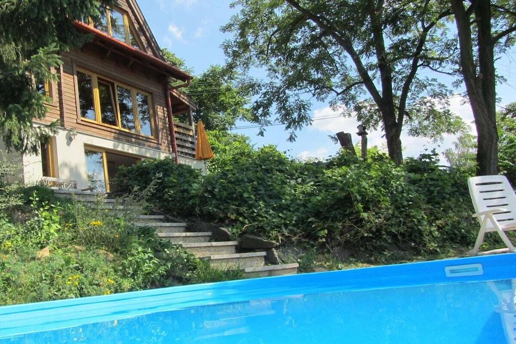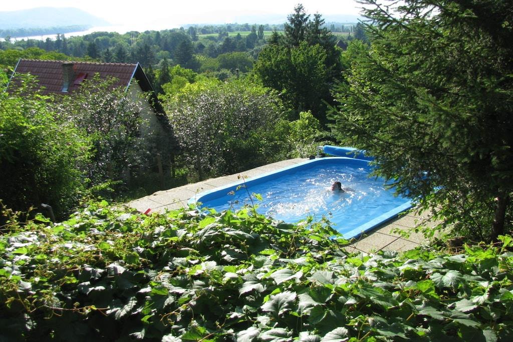 Hos 'Wooden Beauty' kan du nyde en ferie nær Donau. Feriehuset ligger nær kunstnerlandsbyen Zebegény, 67 km nord for Budapest. 'Wooden Beauty' har plads til op til 6 personer. Der er 3 dobbeltværelser. Huset har 3 etager. På første sal finder du det hyggelige og fuldt udstyrede køkken med skydedøre, der fører ud til den store terrasse og haven. På anden sal finder du stuen, et toilet og et dobbeltværelse med to enkeltsenge. Den komfortable stue har en sofa og en sofa samt et smart-tv (Netflix osv.) med satellitforbindelse. Wi-Fi er tilgængeligt på alle husets etager. På tredje sal finder du badeværelset og to dobbeltværelser: et med to enkeltsenge og det andet med en dobbeltseng. Badeværelset har bruser, separat badekar og vaskemaskine. Haven er op til 800 m² og har en stor terrasse med en betagende udsigt over Donau og det omkringliggende område. Den har en hængestol og selvfølgelig en privat swimmingpool med jetstrøm, ideel til massage og svømning mod strømmen.